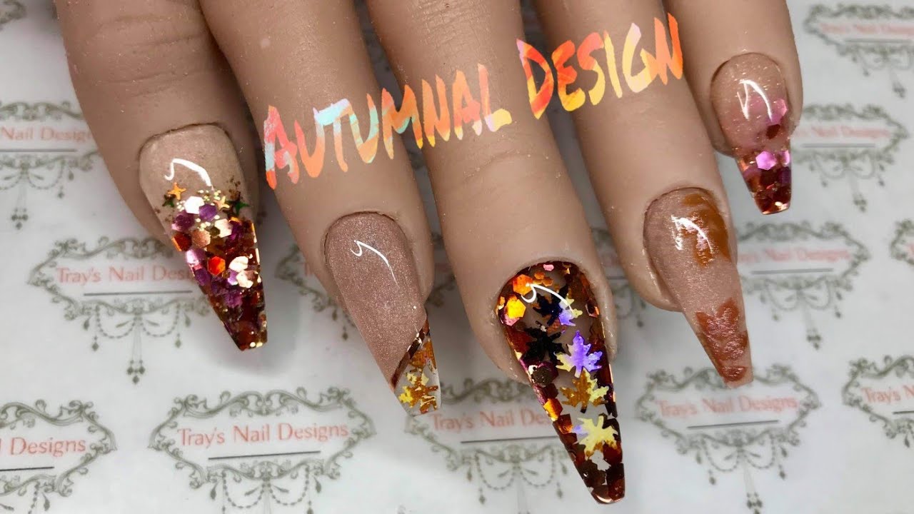 Autumn Maple Leaves Nails Acrylic Nails Youtube